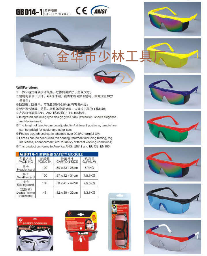 - 产品符合美国ANSI Z87.1和欧盟CE EN166标准。