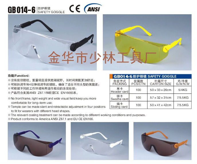 • 产品符合美国ANSI Z87.1和欧盟CE EN166标准。